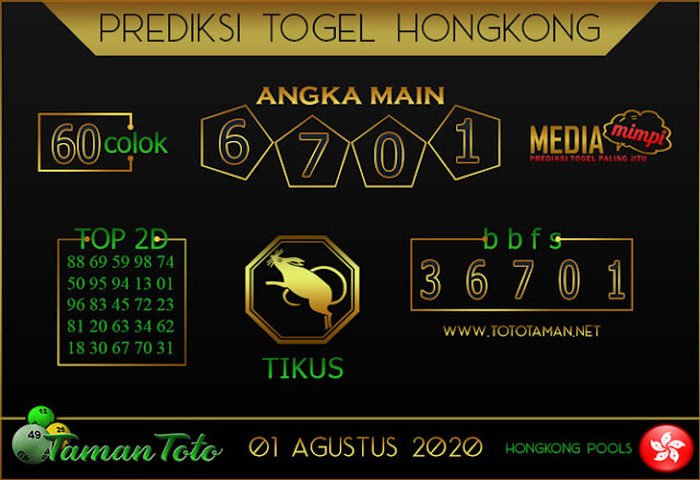 Prediksi Togel HONGKONG TAMAN TOTO 01 AGUSTUS 2020